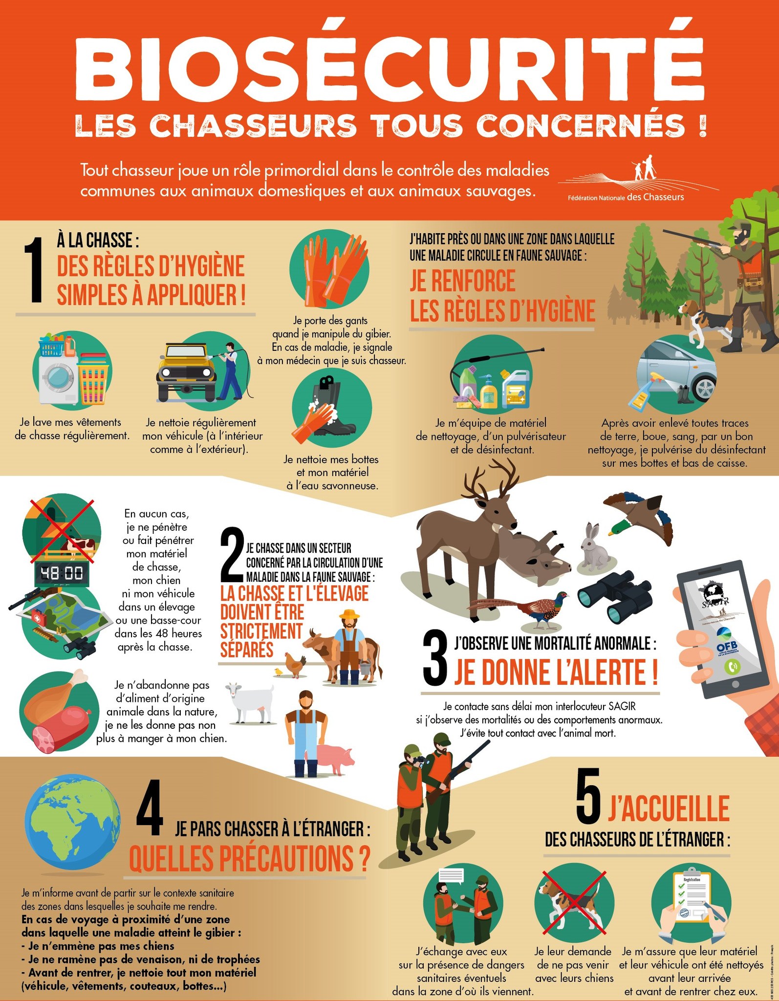 Enfin, nous profitons de cette communication pour, à nouveau, vous informer de l’augmentation très significative des dégâts agricoles observés sur le département et vous demandons de maintenir une pression de chasse importante toute cette saison sans aucune consigne restrictive. Nous vous rappelons que vous pouvez demander des bracelets complémentaires jusque fin mai. ![]() Perturbations d'accès suite au début des travaux de rénovation énergétique de votre Fédération. Lors de cette période, le parking au sein de la Fédération n'est pas ouvert aux véhicules, veuillez vous garer à l'extérieur. L'accueil reste accessible pour les piétons et une sonnette est mise à disposition au niveau du portail pour les personnes à mobilité réduite (PMR). Nous mettons tout en œuvre pour maintenir l'ensemble des services actifs pendant cette phase d'amélioration de vos locaux. ![]() Demande d'autorisation de destruction à tir d'ESOD Pensez à bien retourner vos bilans des autorisations de destruction à tir accordées pour 2025 ! Cliquez sur le bouton ci dessous pour déclarer vos prélèvements (pensez à vous munir du numéro de votre autorisation). VIGILANCE BIOSÉCURITÉ [𝐈𝐧𝐟𝐥𝐮𝐞𝐧𝐳𝐚 𝐚𝐯𝐢𝐚𝐢𝐫𝐞] Passage en risque « élevé » sur le territoire national L’ensemble du territoire national vient de passer en niveau de risque « élevé » concernant le virus de l’Influenza Aviaire Hautement Pathogène (IAHP). Voici les différents 𝐞́𝐥𝐞́𝐦𝐞𝐧𝐭𝐬 𝐚̀ 𝐫𝐞𝐭𝐞𝐧𝐢𝐫 : S𝐢𝐠𝐧𝐚𝐥𝐞𝐳 𝐚̀ 𝐥𝐚 𝐅𝐃𝐂 𝐭𝐨𝐮𝐭𝐞 𝐦𝐨𝐫𝐭𝐚𝐥𝐢𝐭𝐞́ 𝐝’𝐚𝐧𝐚𝐭𝐢𝐝𝐞́𝐬 (canards, oies), laridés (mouettes, goélands), Rallidés (foulques, poules d’eau), ardéidés (hérons), Ciconiidés (cigognes), gruidés (grues), corvidés, limicoles, rapaces, dès le premier cadavre ou tout autre mortalité anormale d’oiseaux afin d’effectuer des analyses dans le cadre du réseau SAGIR; Le transport des appelants nomades reste autorisé pour les détenteurs de catégorie 1 dans la limite de 30 appelants; L’utilisation des appelants résidents est autorisé pour les détenteurs de catégorie 1, 2 et 3; 𝐀𝐮𝐜𝐮𝐧 𝐜𝐨𝐧𝐭𝐚𝐜𝐭 𝐝𝐢𝐫𝐞𝐜𝐭 ne doit avoir lieu entre les appelants nomades et résidents ni entre appelants et oiseaux sauvages; Les lâchers de gibier (faisans, perdrix) restent autorisés. Seuls les 𝐥𝐚̂𝐜𝐡𝐞𝐫𝐬 𝐝𝐞 𝐜𝐚𝐧𝐚𝐫𝐝𝐬 𝐞𝐭 𝐝’𝐨𝐢𝐞𝐬 𝐬𝐨𝐧𝐭 𝐢𝐧𝐭𝐞𝐫𝐝𝐢𝐭𝐬. 𝐍𝐨𝐮𝐬 𝐜𝐨𝐦𝐩𝐭𝐨𝐧𝐬 𝐬𝐮𝐫 𝐯𝐨𝐭𝐫𝐞 𝐯𝐢𝐠𝐢𝐥𝐚𝐧𝐜𝐞 ! INFOS PRATIQUES : Accueil : 03. 29. 31. 10. 74 Comptabilité : 03. 29.31.83.83 SOS Braconnage : 03. 29. 31. 83. 81 Mail : fdc88@chasseurdefrance.com Facebook : https://www.facebook.com/FDCVosges Fédération Départementale des Chasseurs des Vosges ![]() TELECHARGEMENT Retrouvez nos formulaires types pour toutes vos démarches administratives Newsletter : pour recevoir notre lettre d'informations, abonnez-vous ici ! Chasseurs de l'Est : pour vous abonner à la revue, contactez-nous ! |